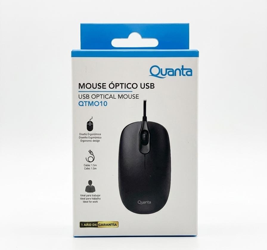 ​Este ratón óptico USB Quanta QTMO10 es la solución perfecta para tu espacio de trabajo o estudio. Su diseño ergonómico y ambidiestro garantiza una comodidad excepcional durante horas, adaptándose perfectamente a cualquier usuario. Cuenta con un sensor óptico de alta precisión para un seguimiento suave y preciso, y su conexión plug-and-play mediante USB te permite empezar a usarlo al instante sin necesidad de instalar drivers. Además, su cable generoso ofrece la flexibilidad que necesitas. Disponible en un elegante color negro con el logotipo de Quanta.